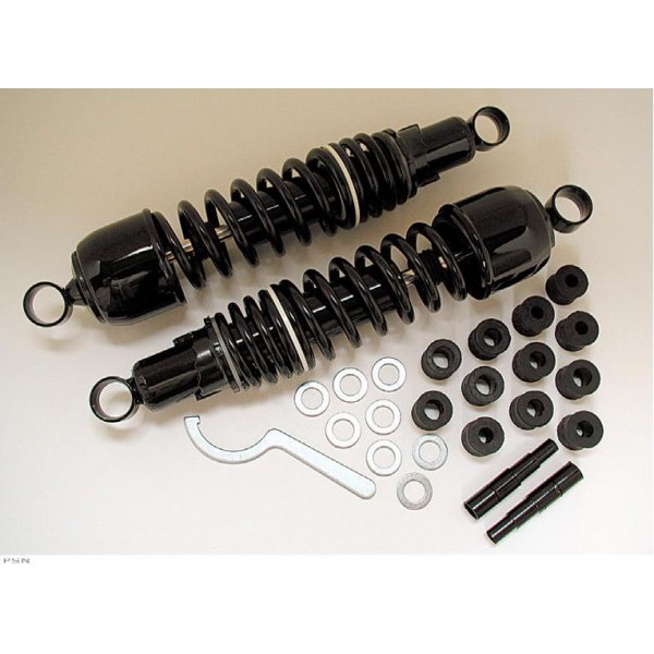 Para amortyzatorów uniwersalnych o długości 340mm (od osi otworu do osi otworu w widekach z gwintem) Pasują do wielu klasycznych motocykli japońskich. W zestawie kilka rodzajów tulejek o różnych średnicach otworów.